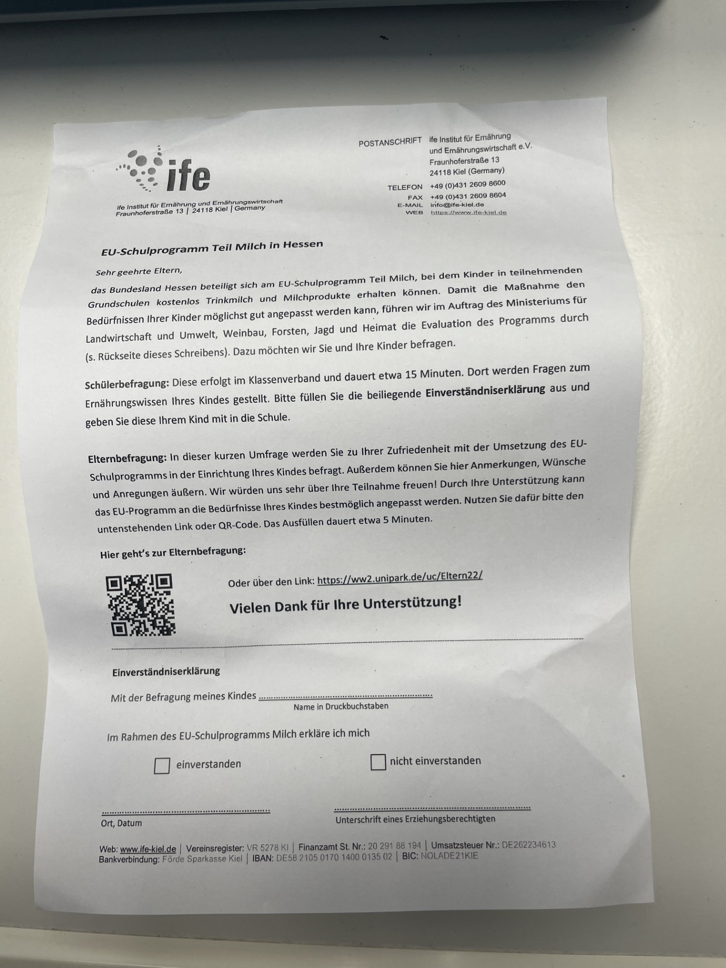 - · Rücklauf Elternzettel
